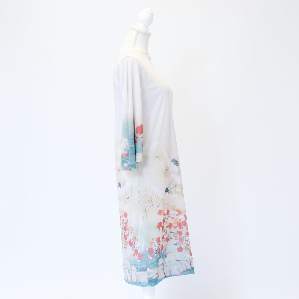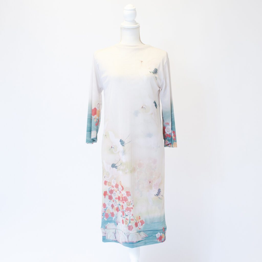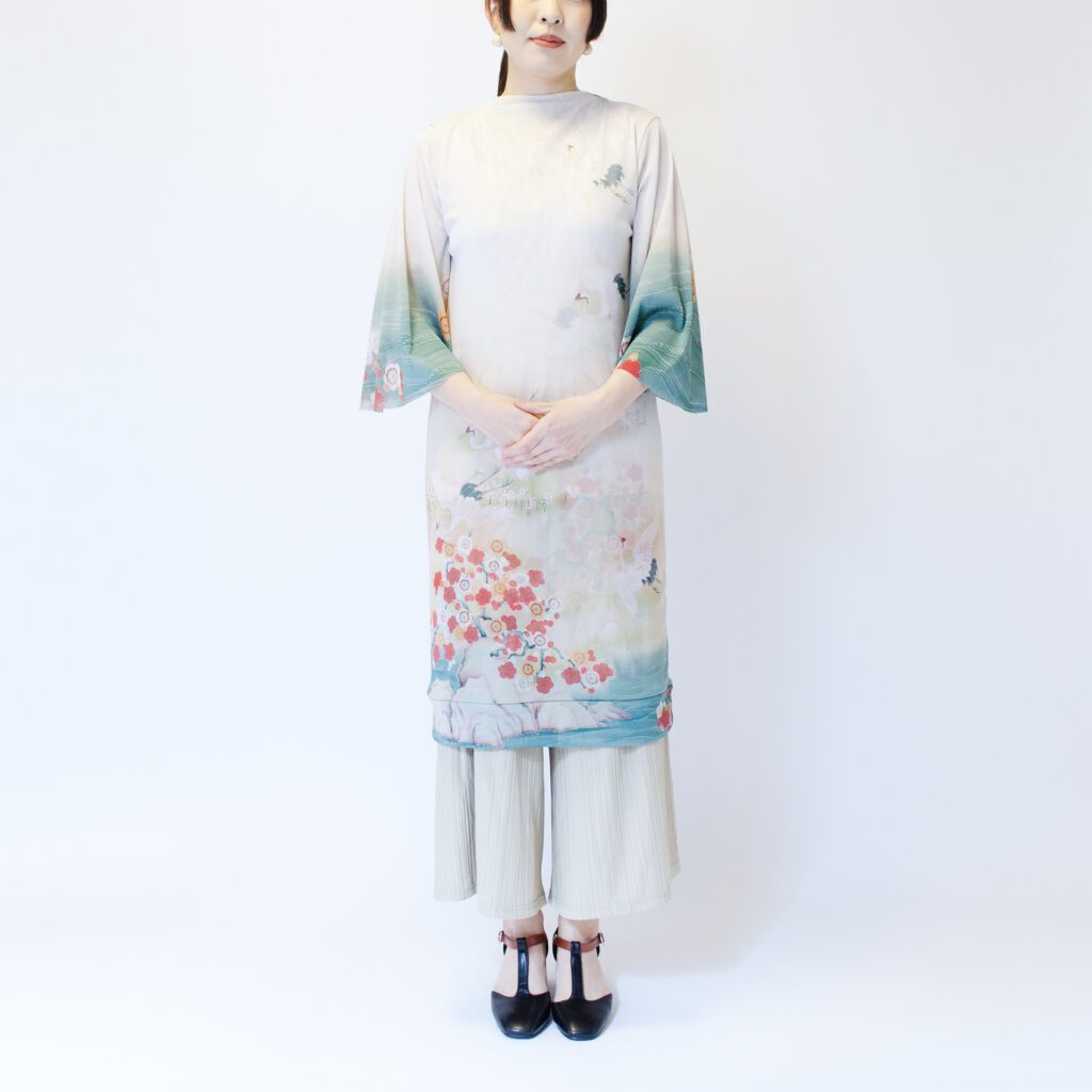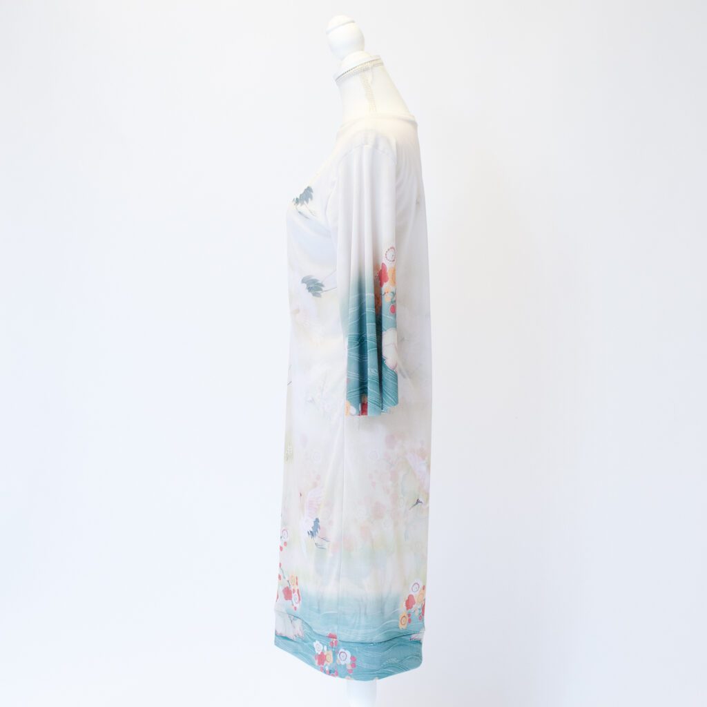 前と後ろという概念をなくし、前後どちらを前にしても大丈夫な形にしています。前と後ろで柄入りを変えたので、その日の気分に合わせて、好きな方を選んでいただけます。 襟と裾を開き縫いの処理をしています。袖は軽やかさと優美さを重視して、切りっぱなしにしております。 今までは袖は生地一重でしたが、今回は胴と同じ二重にいたしました。透けているけれども、二重なのでそこまですけすけではなく、安心感があります。 ※二重でも透けますので、ワンピースの下にはお手持ちのキャミソールやペチコートなどを必ず着用して下さい。 素材は『パワーネット』という透ける素材です。 とても軽量で、通気性もよく、伸縮性もあります。とてもコンパクトになるので旅行や演奏会への持ち運びにとても活躍しています。洗濯ネットにいれれば、洗濯機での洗濯も可能で、速乾性に優れているので、乾くのがとてもはやいです。 KIKOIZMオリジナルのパッケージで梱包いたします。