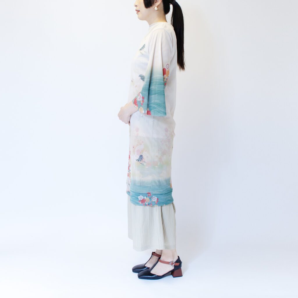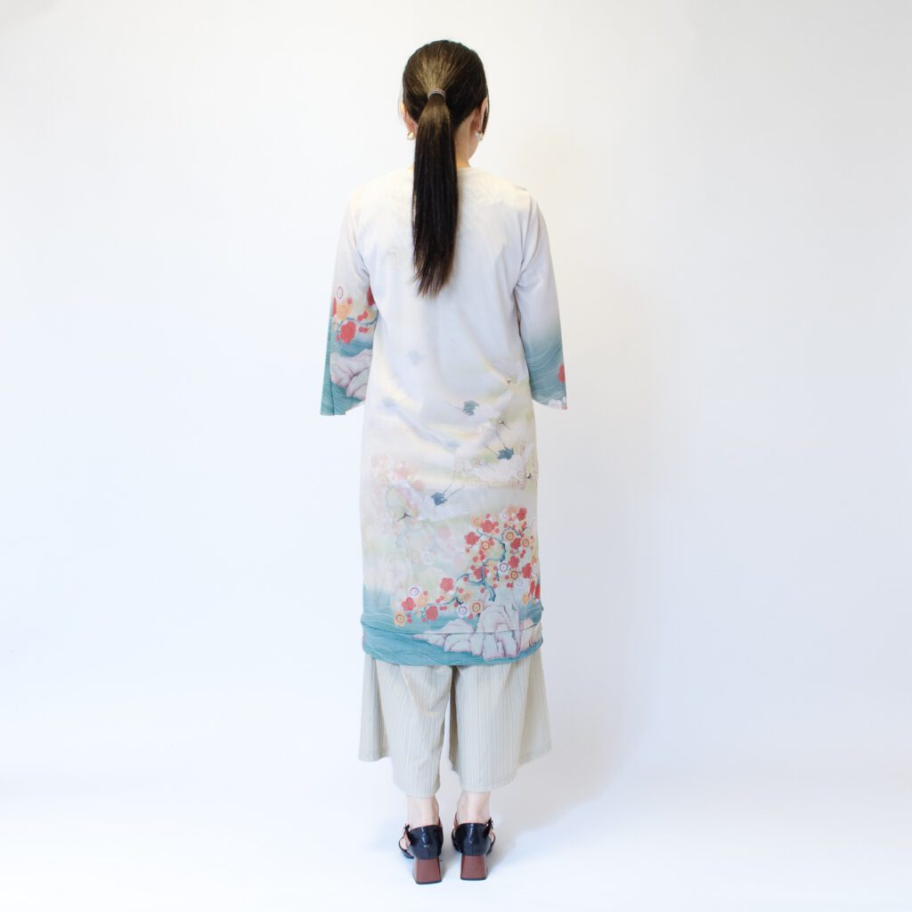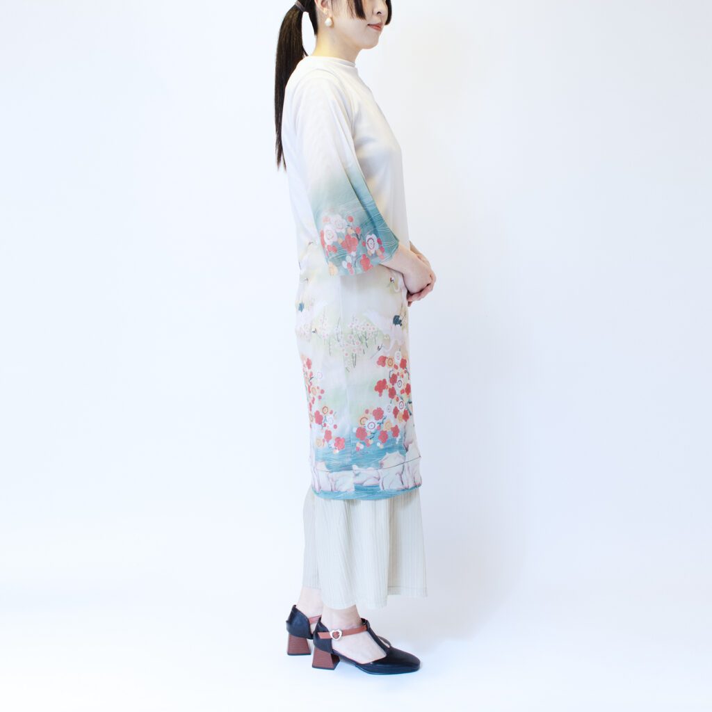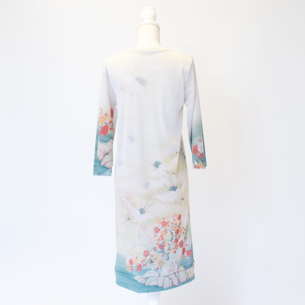 前と後ろという概念をなくし、前後どちらを前にしても大丈夫な形にしています。前と後ろで柄入りを変えたので、その日の気分に合わせて、好きな方を選んでいただけます。 襟と裾を開き縫いの処理をしています。袖は軽やかさと優美さを重視して、切りっぱなしにしております。 今までは袖は生地一重でしたが、今回は胴と同じ二重にいたしました。透けているけれども、二重なのでそこまですけすけではなく、安心感があります。 ※二重でも透けますので、ワンピースの下にはお手持ちのキャミソールやペチコートなどを必ず着用して下さい。 素材は『パワーネット』という透ける素材です。 とても軽量で、通気性もよく、伸縮性もあります。とてもコンパクトになるので旅行や演奏会への持ち運びにとても活躍しています。洗濯ネットにいれれば、洗濯機での洗濯も可能で、速乾性に優れているので、乾くのがとてもはやいです。 KIKOIZMオリジナルのパッケージで梱包いたします。